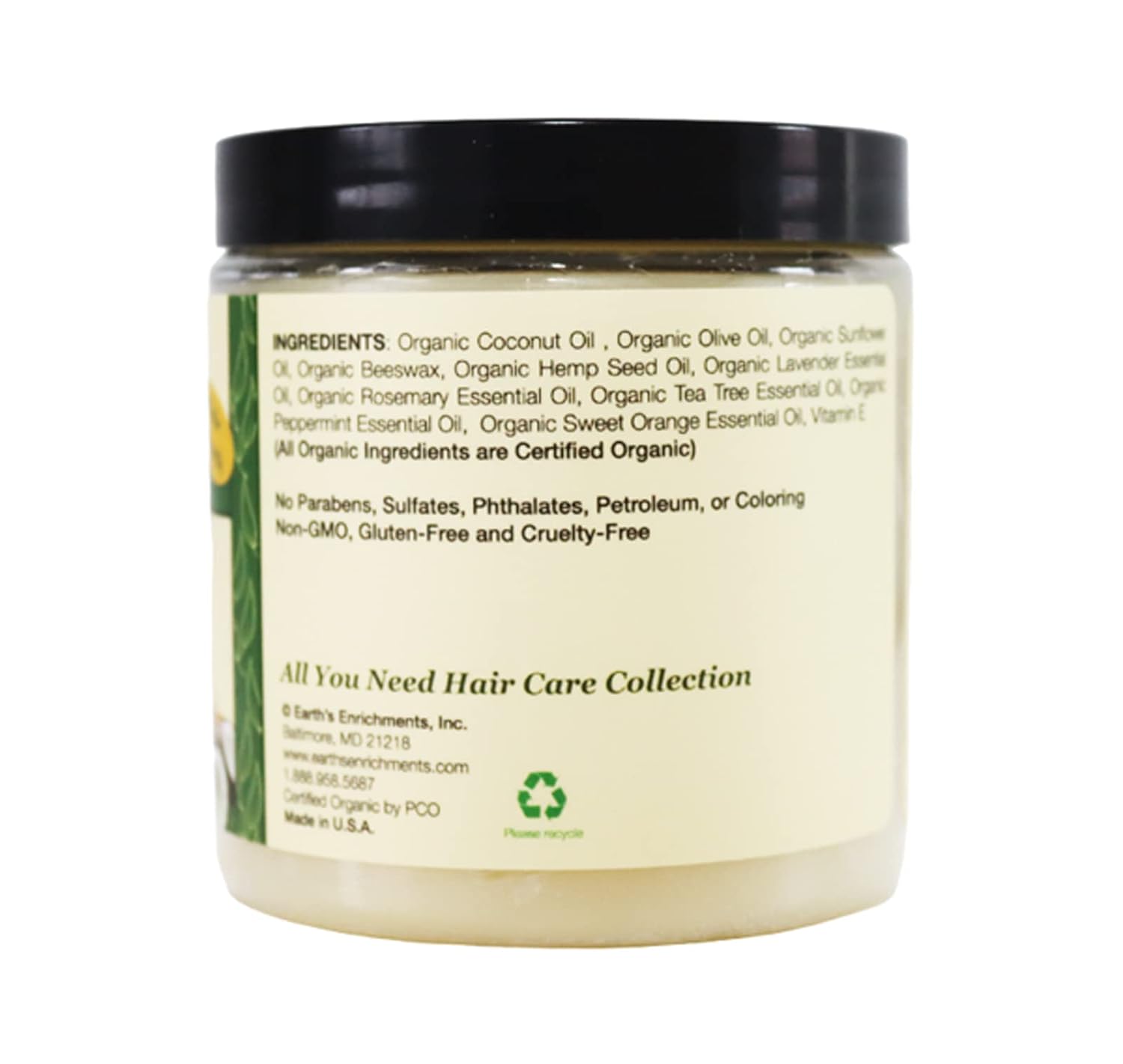 Earth's Enrichments Organic Pomade - Hair Food for Growth, Contains Tea Tree, Rosemary, Lavender Oil, Natural Hair Grease for Thick, Straight, Curly, Wavy, Thin Hair, Women, Men, Kids, USDA, 8oz