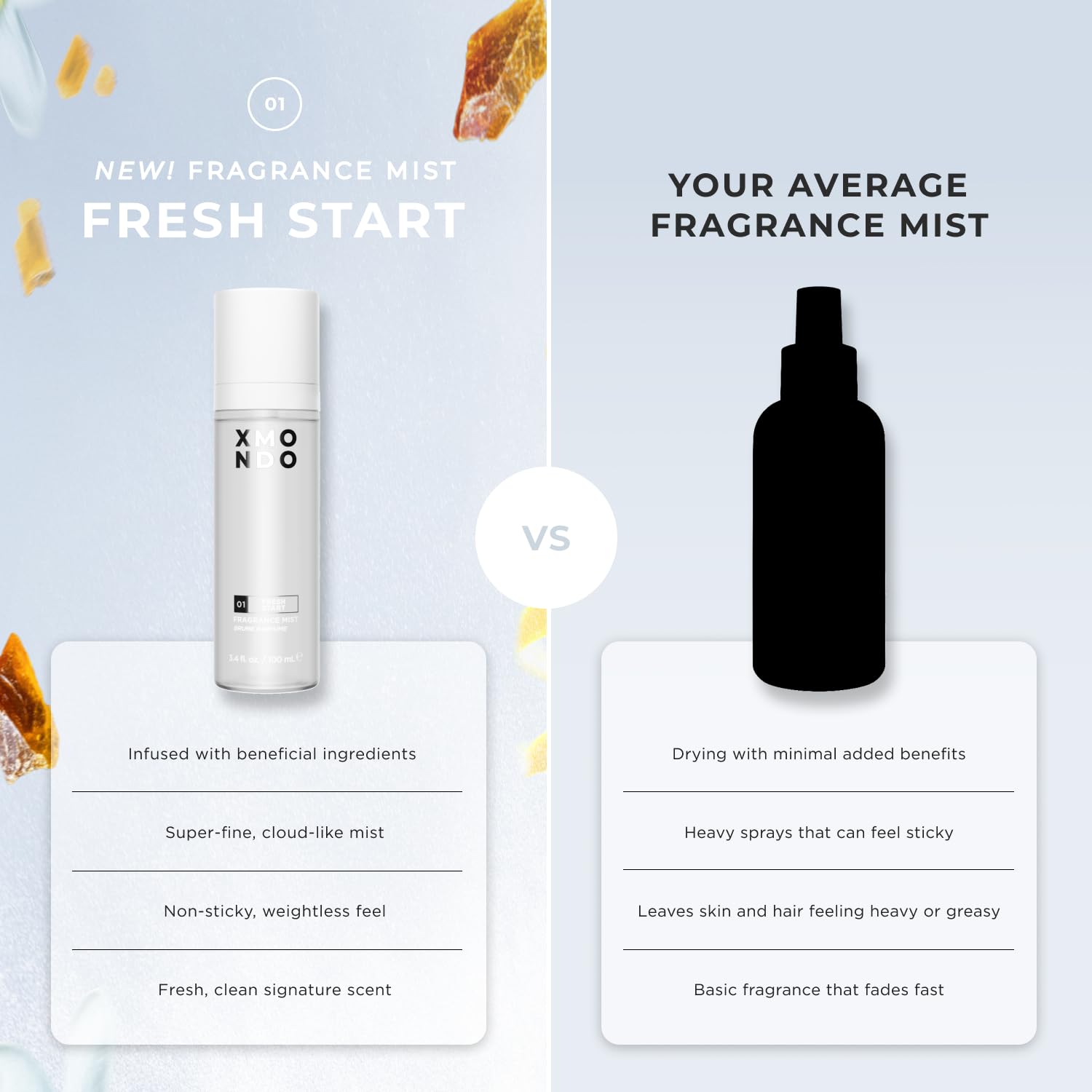 XMONDO 01 Fresh Start Fragrance Mist - Lightweight Hair & Body Perfume Mist with Hyalurionic Acid & Squalane, Fresh Clean Scent, 3.4 fl oz / 100 mL